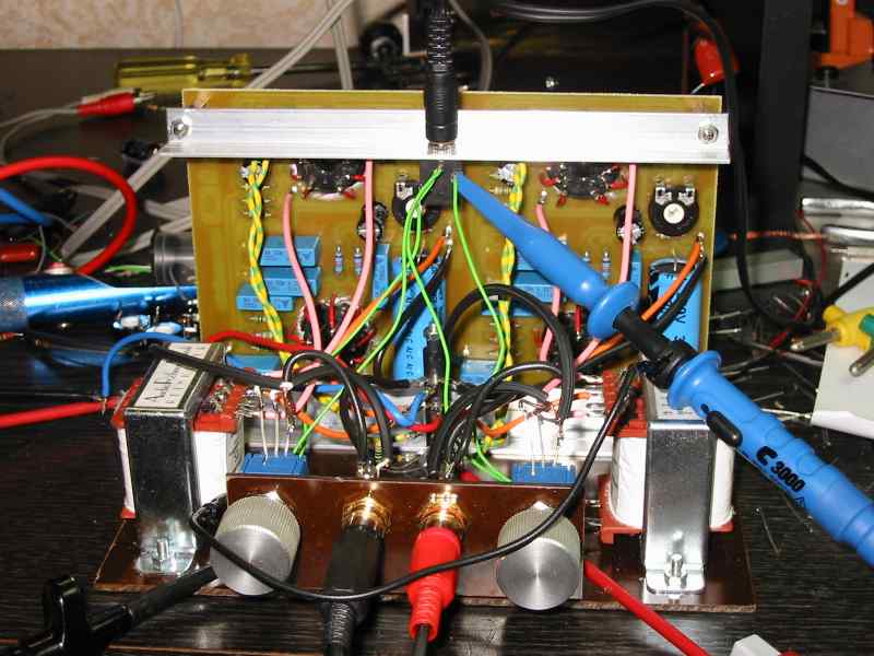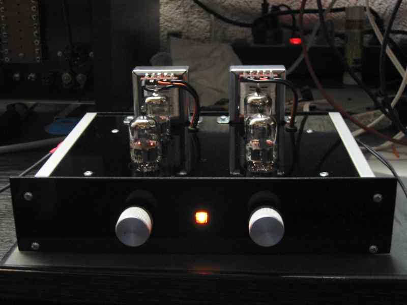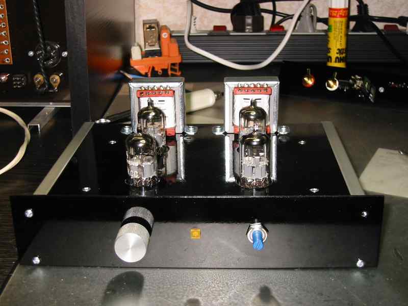 Alles fing an mit einer "Schnapsidee" und endete letzt endlich in dem hier vorgestellten Gegentakt- verstärker. Das "Verstärkerchen" hat ausreichend Leistung um auch etwas Leistungshungrige Kopfhörer zu versorgen. Durch die Gegentaktschaltung ist Brumm absolut kein Thema. Für die Dimensionierung der Schaltung habe ich eine für Röhren extrem niederohmige Variante gewählt. Das brachte mir folgende Vorteile : - Die Phasenumkehr