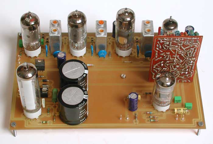 Endstufen-Version, eine ECC83 und zwei EL84. - Die Tuner-Version, ohne Endstufe, hat dafür eine ECC83 als Ausgangsstufe