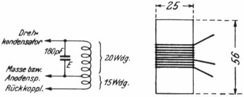 abhängigen Empfang liefert. In diesem Fall könnte man die Rückkopplungsspule von 15 etwa auf 20 Windungen