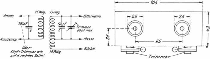 Sind die Spulen genau nach Angabe gewickelt, so genügt primärseitig ein Festkondensator +/- 100 pF 10% ohne