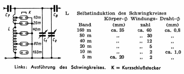 Niederfrequenzstufe (0-v-1). Ein besonderes Merkmal liegt darin, daß er für jeden Bereich nur eine einzige Spule