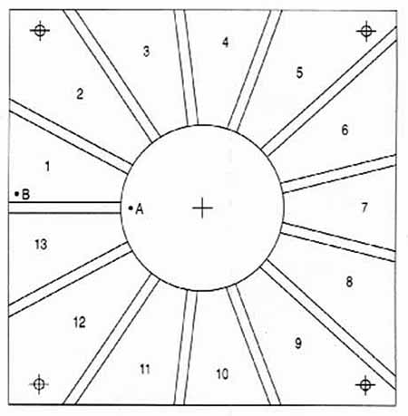 Umrisse der Spulenträger ausgesägt, und es folgen 26 Sägeschnitte in Richtung des kreisförmigen