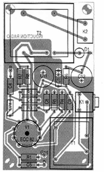 Das Induction Radio ist schaltungstechnisch ein so genannter Geradeaus-Empfänger, aufgebaut mit der Zweifach-Triode