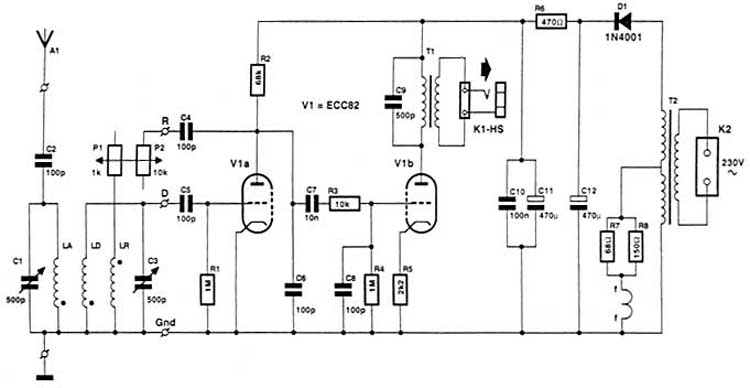 Anteils zum Audion-Kreis zurückgeführt. Dieses Signal ist normalerweise mit dem HF-Signal am Audion-Schwingkreis