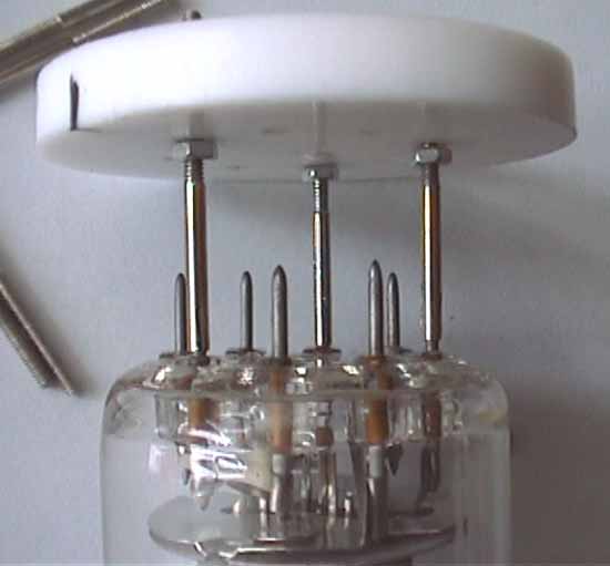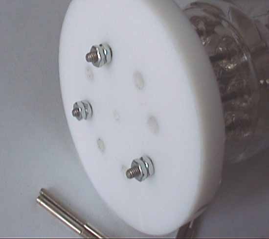 Auf dem nächsten Bild erkennt man die drei Röhrchen mit einer der Teflonscheiben, wie ich sie weiter oben schon