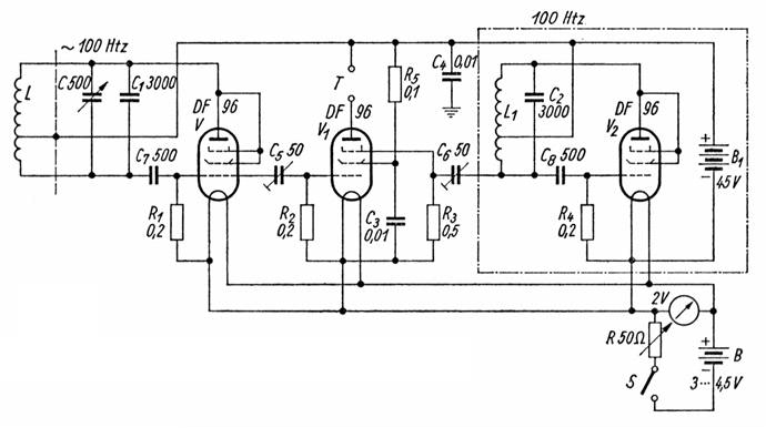 Angaben. Die am Gitter von V liegende Hochfrequenzspannung führen wir nun über C5 dem ersten Steuergitter von V1
