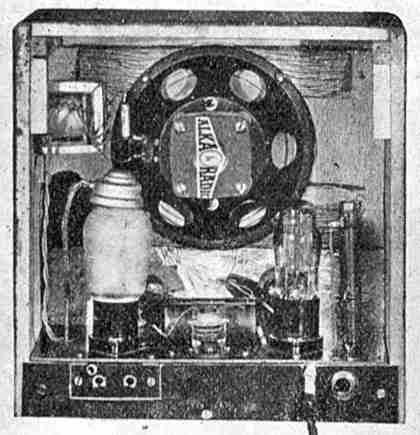 Der Abstimmdrehkondensator ist auf der Vorderseite in dem durch den Lautsprecherkegel gebildeten freien Raum untergebracht.