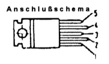 Die folgende Skizze zeigt das Gehäuseanschlußbild dieses IC's.