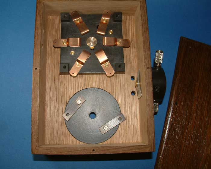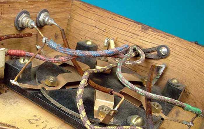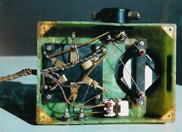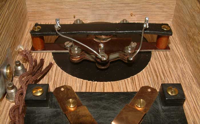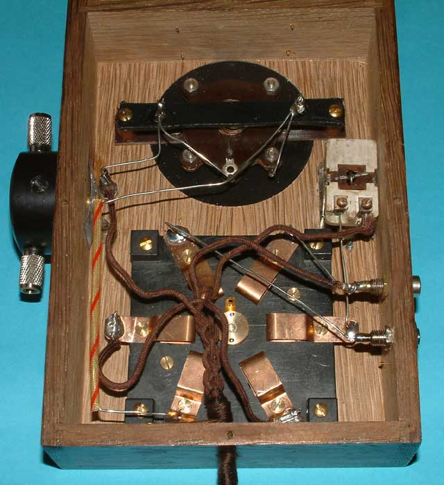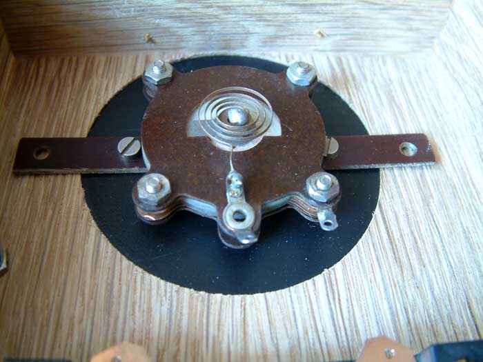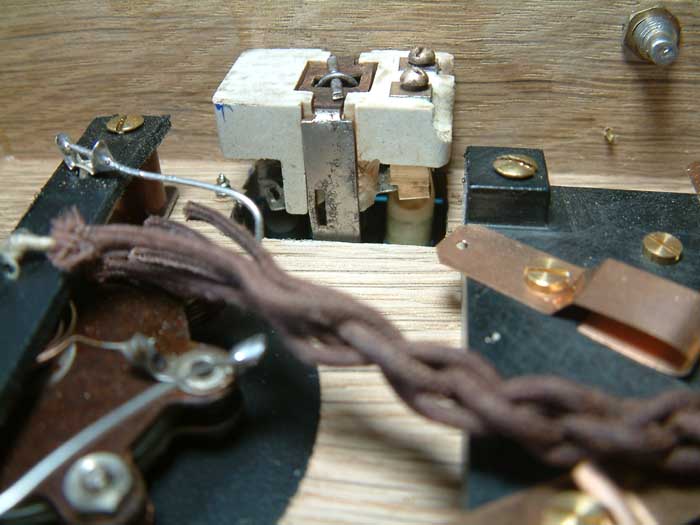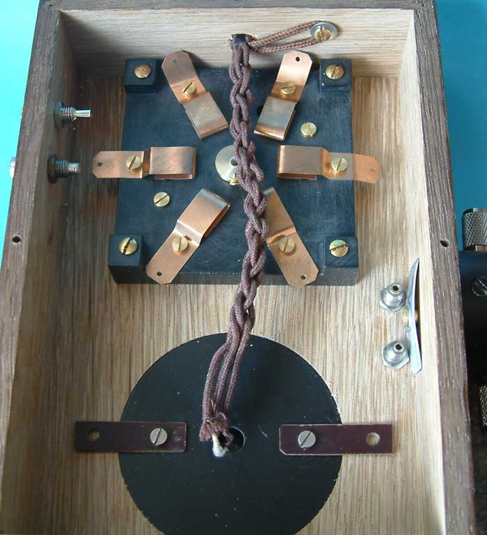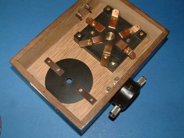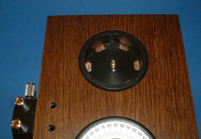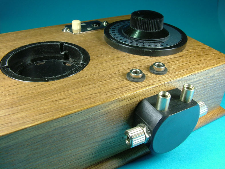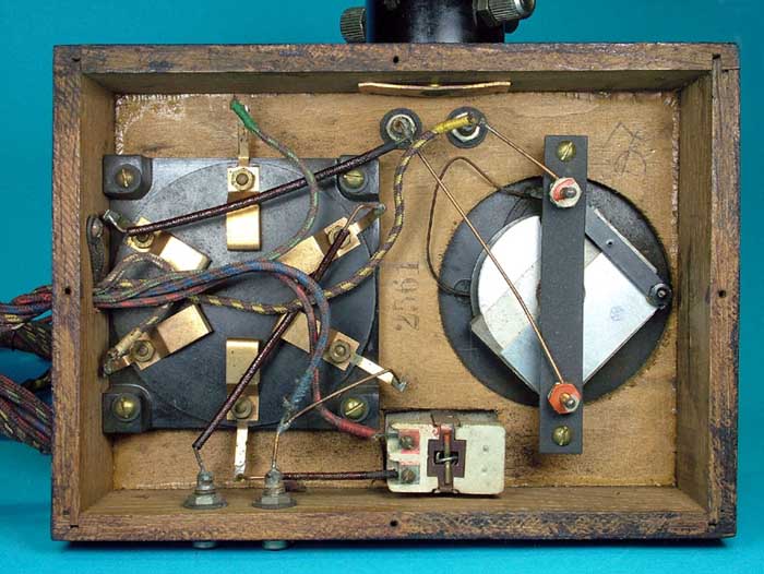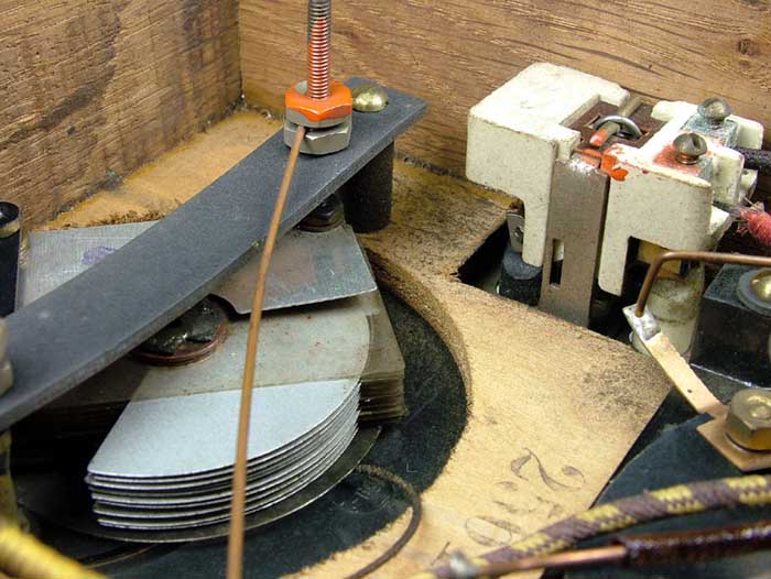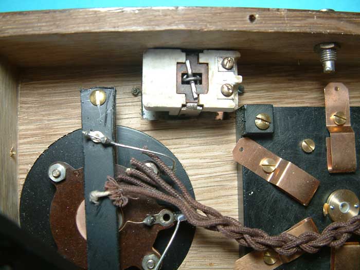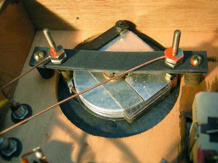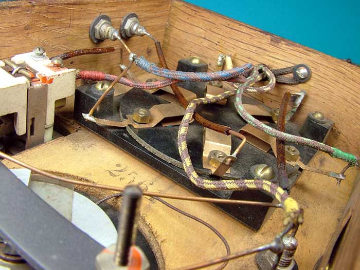 Im Holzgehäuse befanden sich nur noch der einfache Ein/Aus-Schalter und ein Glimmer-Drehkondensator einfachster Bauweise
