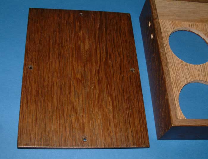 - habe ich die Alu-Schildchen an das Holzgehäuse genagelt - nach vorherigem Vorbohren mit einem 0,8-mm-Bohrer.