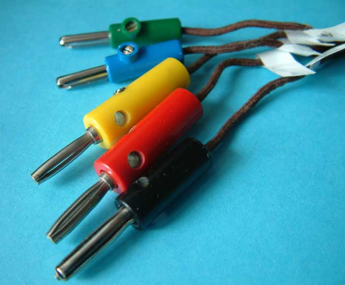 blanken Kabelenden, so gut es eben ging. Durch das verschrauben mit der Schraube im Bananenstecker werden sie noch