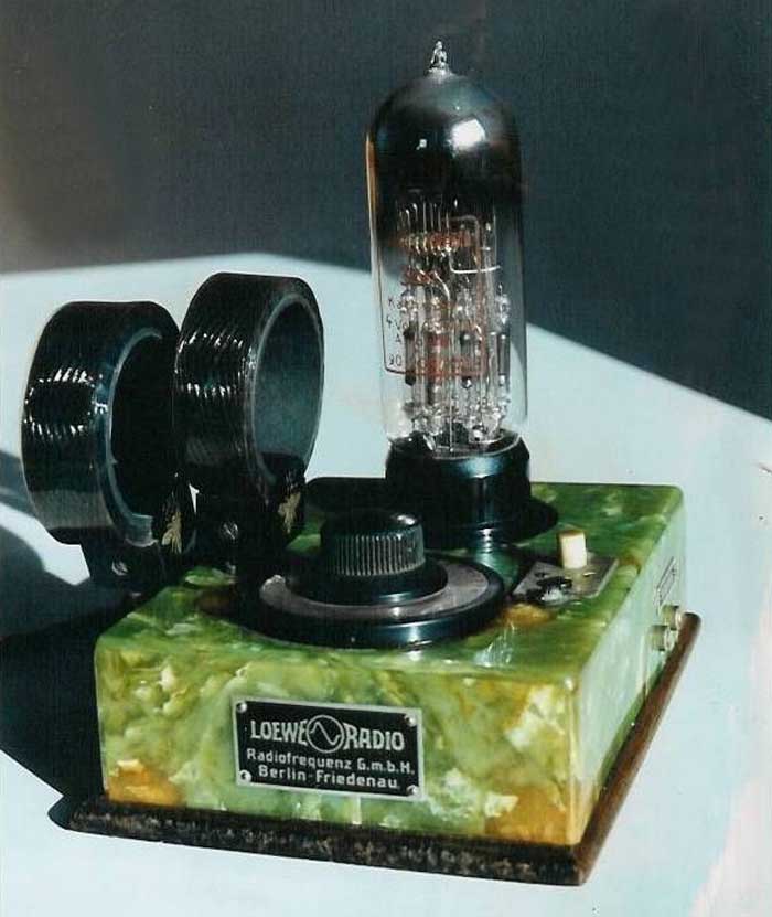 Das Herzstück dieses Empfängers war die Loewe-Dreifachröhre, die in Zusammenarbeit mit dem genialen Erfinder