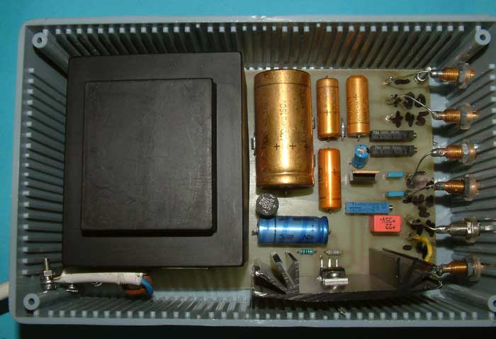 Die beiden folgenden Fotos zeigen das aufgebaute Netzteil, in einem Kunststoff-Schalengehäuse (Pollin, Conrad)