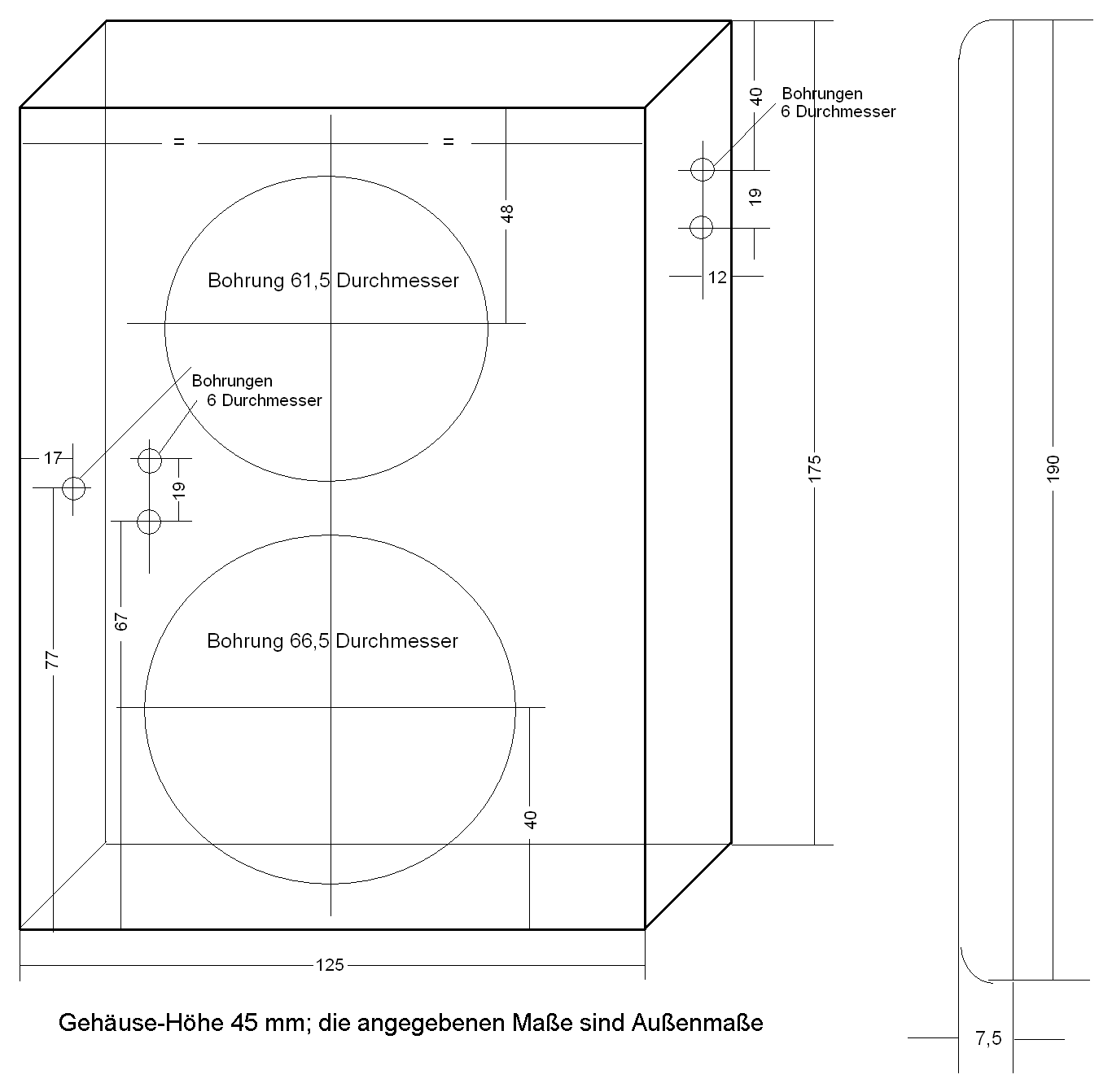 Als erstes das Holzgehäuse, hier ist jedoch nur noch die Konstruktionszeichnung notwendig, die bisherigen Fotos