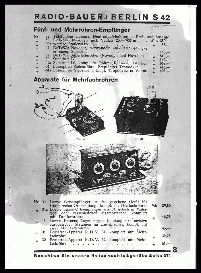 einem Katalog von Radio Bauer, Berlin, aus der damaligen Zeit (Pos. 34a):