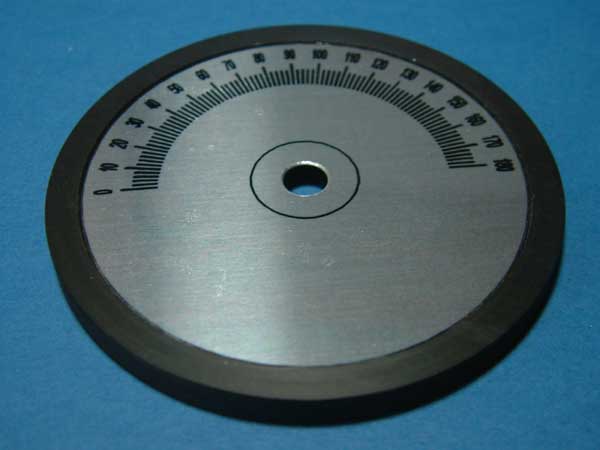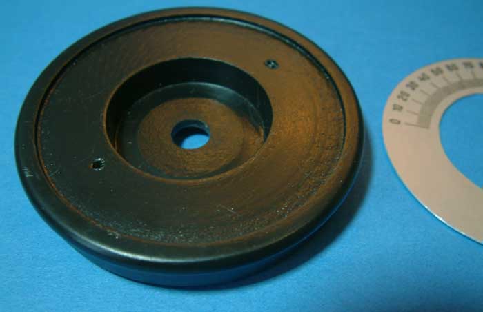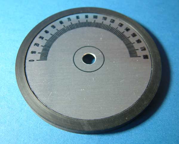 - und die Skalenplatte, bestehend aus schwarzer Grundplatte und bedruckter Alu-Skala: