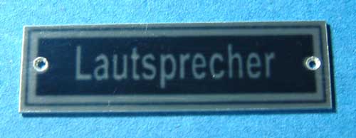 Das "Telefon"- bzw. Lautsprecher-Schildchen, welches an der rechten Gehäuseseite angebracht wird: