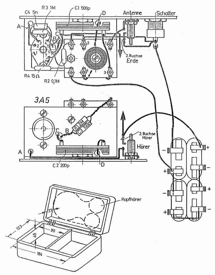 4 Kondensatoren und drei Widerständen einen wirklich arbeitsfähigen Empfänger ergeben. Beim Betrieb aus