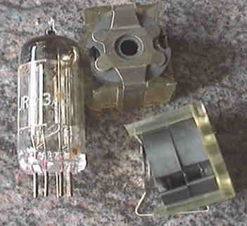 Das folgende Bild zeigt zwei dieser Spulensätze im zusammengesetzten Zustand, daneben eine Röhre 3 A 5 von RCA.