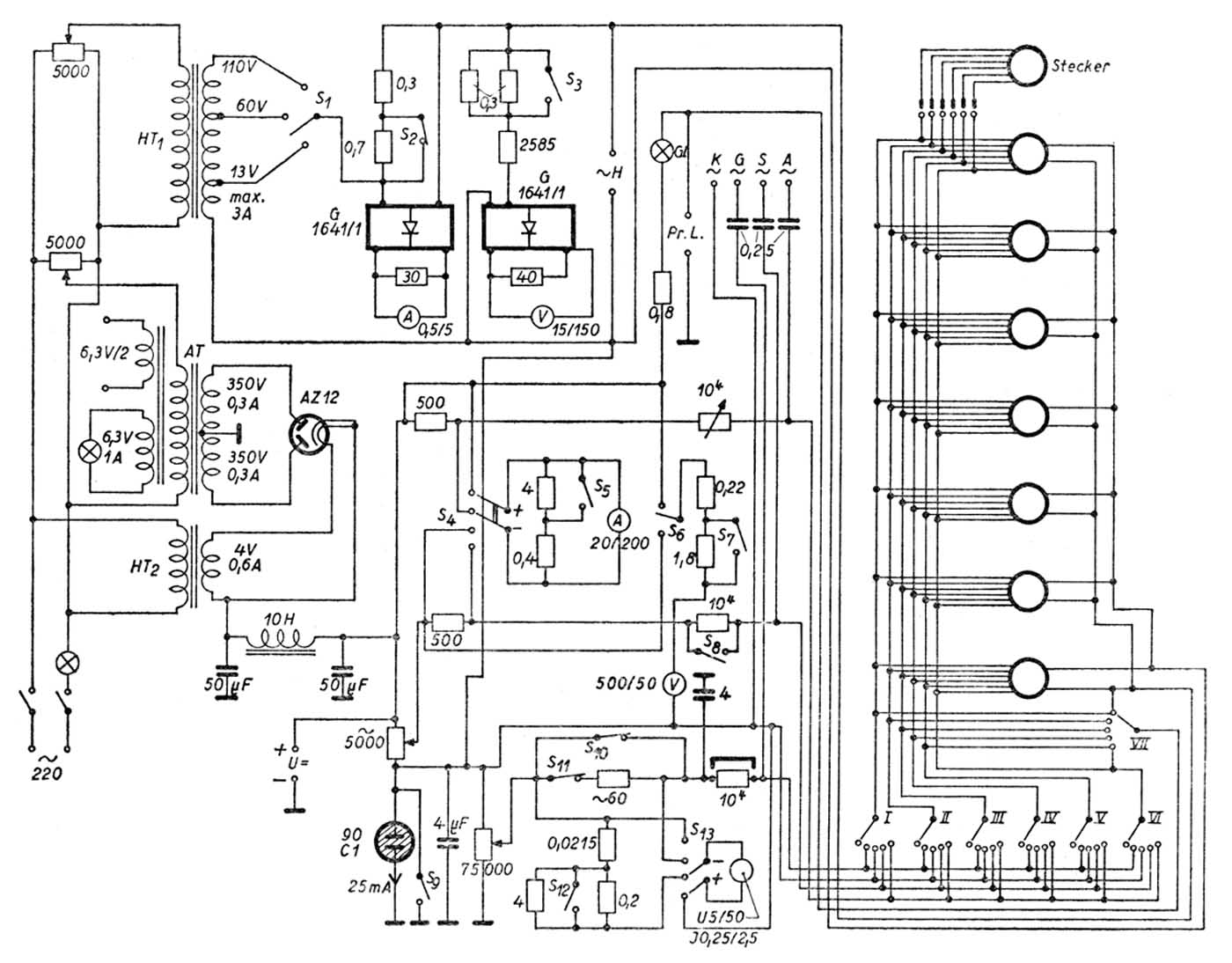 Die Schaltung ist im folgenden Bild wiedergegeben. Das Gerät enthält fünf verschiedene