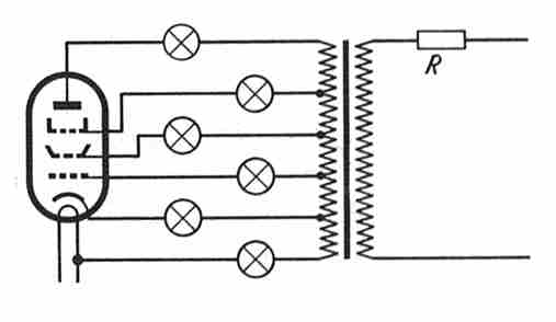 Die Elektroden der einzelnen Röhrensockel - außer den Heizfadenelektroden - sind, wie aus der Schaltung