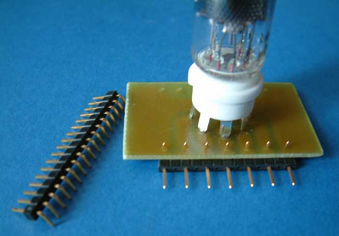 Adapter. Das folgende Bild zeigt eine aufgetrennte Platine mit einer 7-poligen Fassung mitsamt einer Röhre: