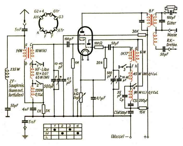 Rückkopplung des Bandfilters erreichen. Wenn die Rückkopplung auch fest durch einen Trimmer eingestellt werden