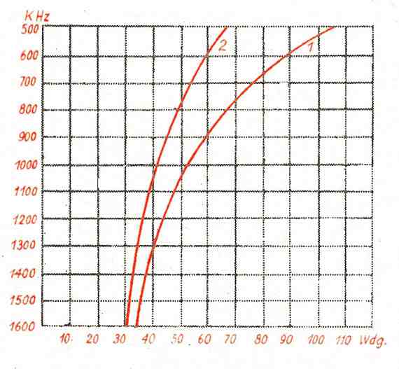 Schnittpunkt 740 kHz (Kurve 1) = 74 Windungen. - Für den Oszillator analog am Schnittpunkt mit Kurve 2 = 52 Windungen.