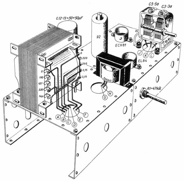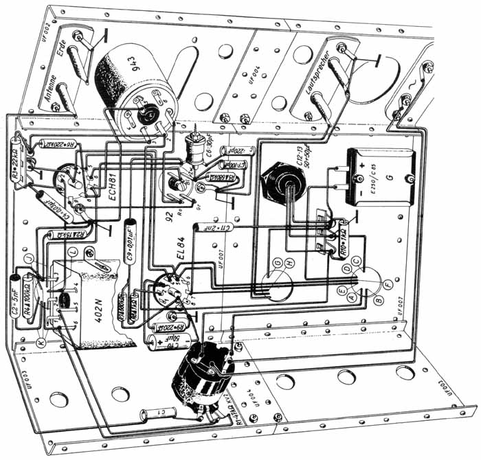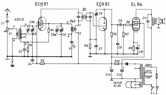 Die Eigenart der Schaltung besteht darin, daß für die Hf- und Zf-Stufe eine Röhre ECH 81 verwendet wird. Ihr