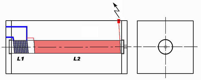 Die Sekundärspule L2 ist auf der HF kalten Seite geerdet. Bei größeren Spulen (ab 800 W-1 kW) MUSS eine