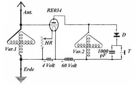 (Im Schaltbild eingezeichnet ist die Röhre RE 034; es läßt sich aber auch z.B. eine RE 084 verwenden, - ich