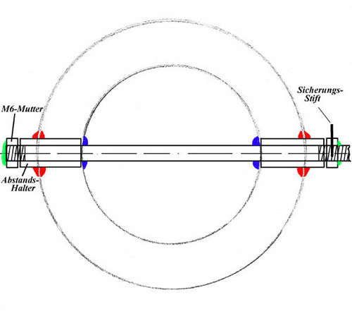 Abstand zwischen Mutter und Abstandshalter verbleiben. Die Muttern werden mit einem Tropfen Sekundenkleber verklebt, das