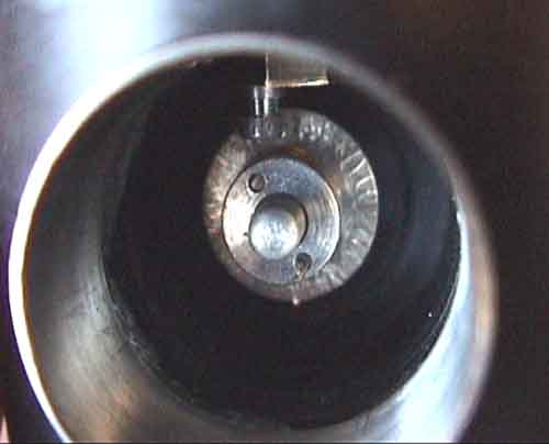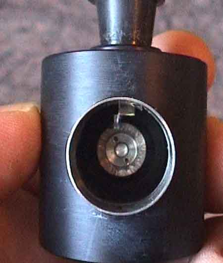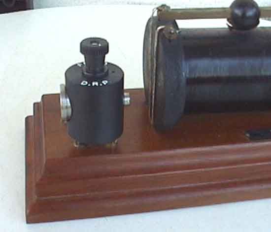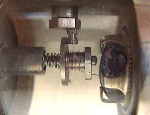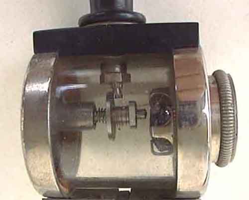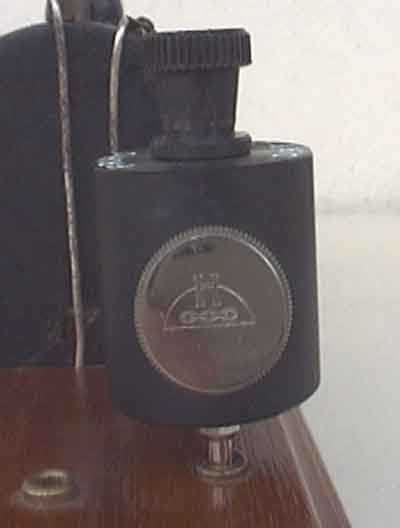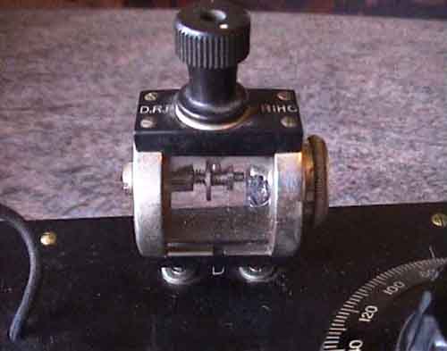 Hier sitzt die Kontaktfeder oben auf dem Kristall. Durch Drehung des oberen schwarzen Knopfes wird die exzentrisch