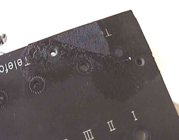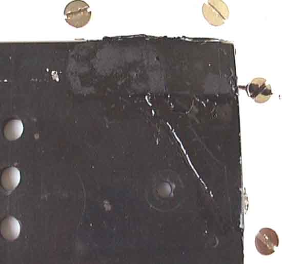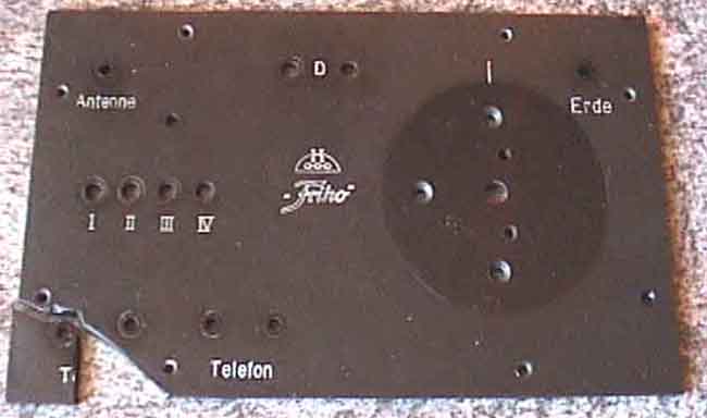 der Stelle an der der Skalenknopf saß der den Drehkondensator betätigte ist das Hartgummi noch tiefschwarz.