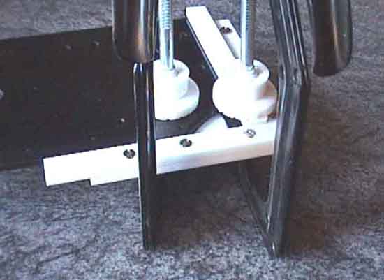 angeordnete Mechanik (oberster Teil) gedreht und bewegt damit die mittlere Platte nach hinten weg (auf dem Bild nach links),