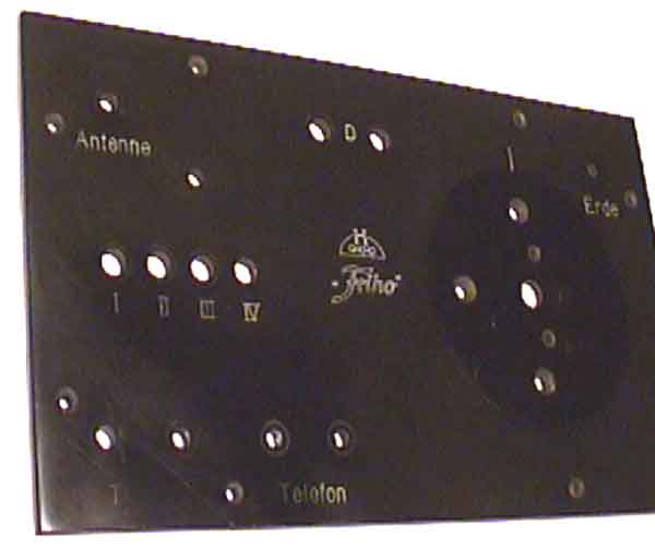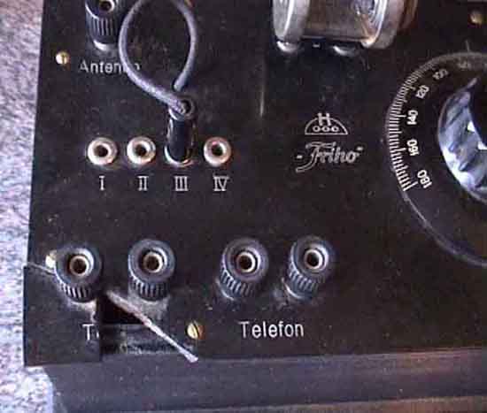 Die vier unteren Anschlüsse sind beides Telefon-Anschlüsse, so bezeichnete man damals den Kopfhörer. Die