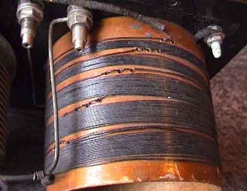 Im folgenden Bild die Spule von innen; man erkennt sehr schön die Abgriffe der Spule.