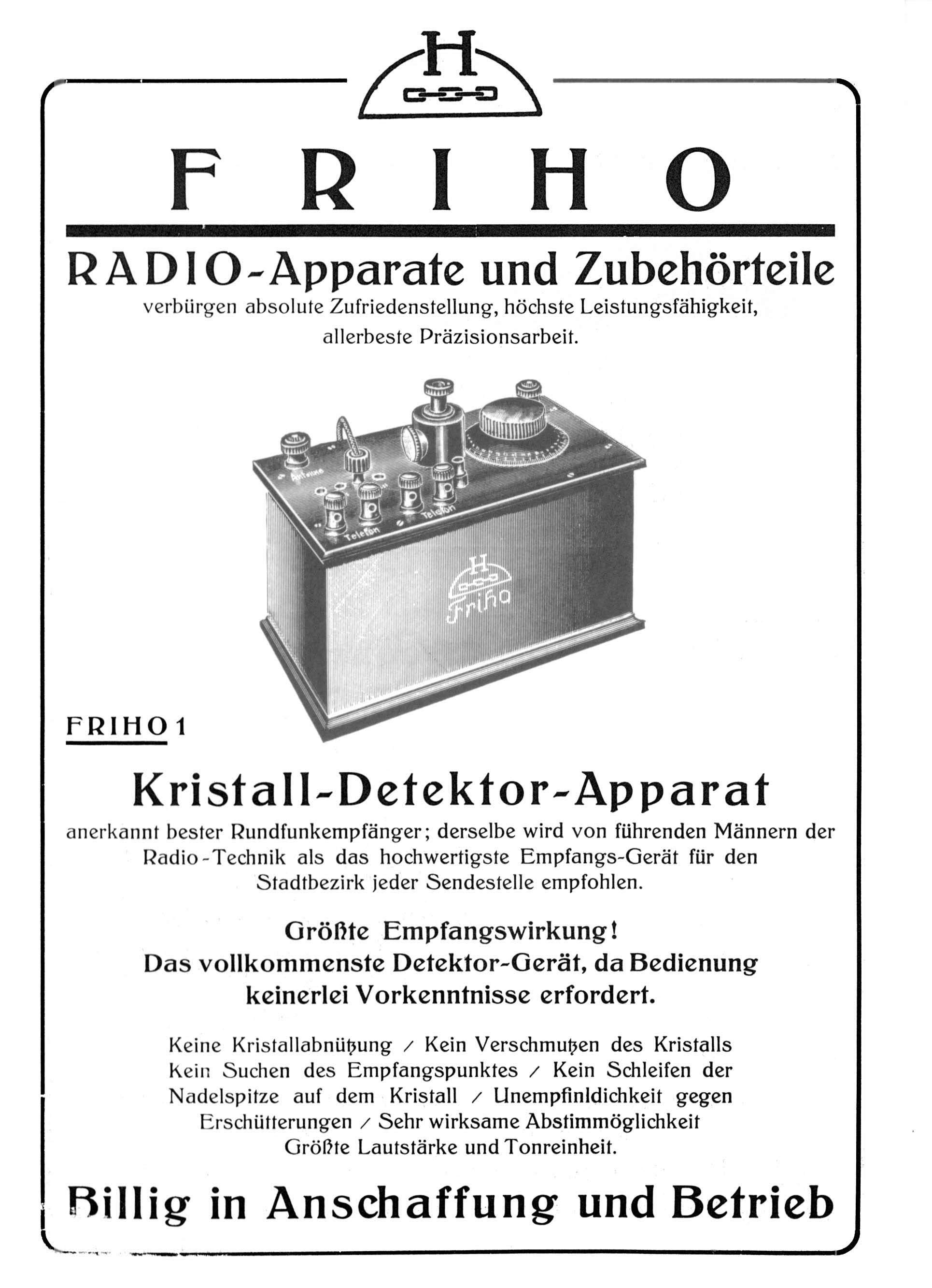 Zum Schluß noch einmal eine Friho-Werbung aus der Hoch-Zeit der Detektor-Geräte.