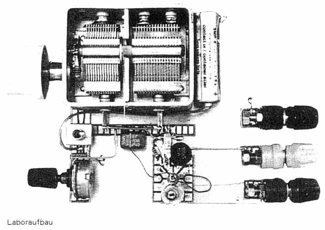 Der Aufbau ist denkbar einfach und unkompliziert. Als Abstimm-Drehko kann man wieder einen alten Rundfunk-Drehko benutzen.