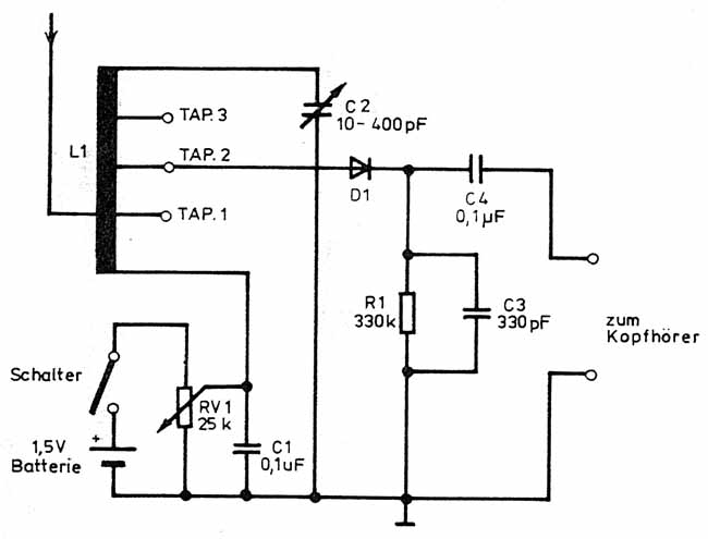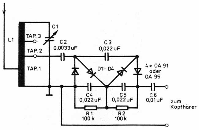 Die wirkungsvollste Anzapfung muß durch Experimentieren gefunden werden, denn Antenne und Diode haben darauf