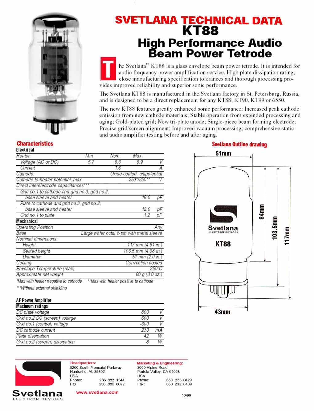 Datenblatt zur Svetlana - KT 88