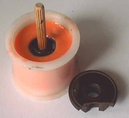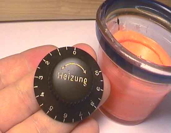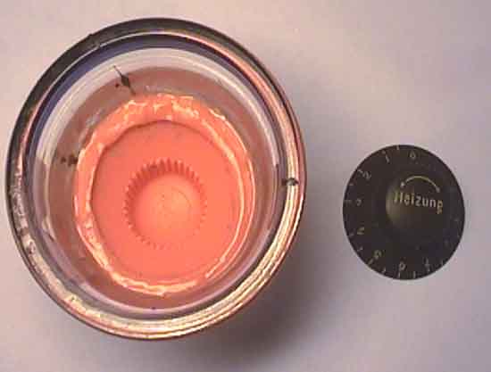 einfließen, die Haltbarkeit des anzugießenden Teiles mit dem Bakelit-Knopf wird dadurch erheblich verbessert.