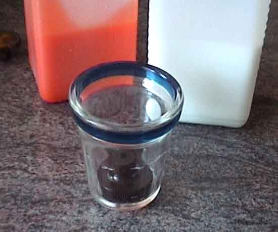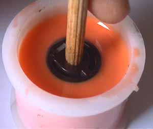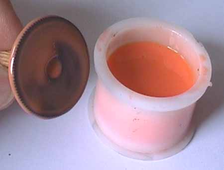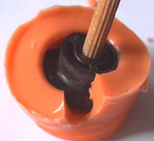 Die Silikon-Abdruckmasse ist fertig angerührt und in die Hilfsform gegeben. Der abzuformende Knopf wird