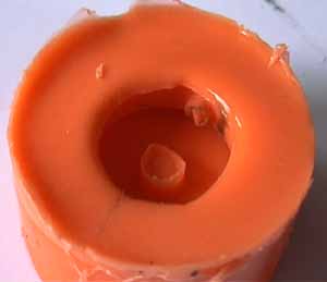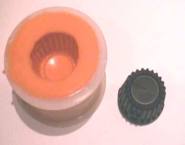 der Knopf vorsichtig, damit die Form dabei nicht zerbricht, herausgezogen.