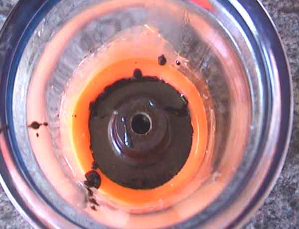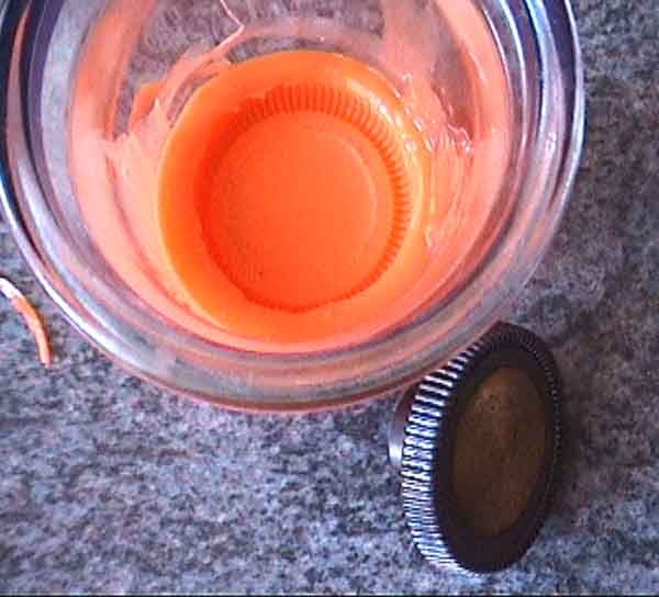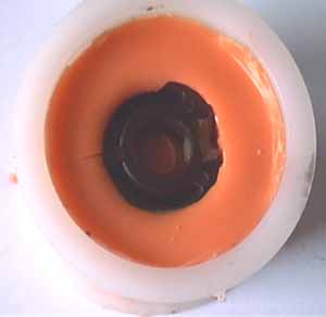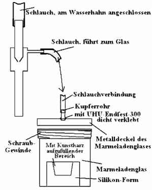 Außenseite mit der Silikonabdruckmasse benetzt. Somit wird verhindert daß sich Luftblasen an der Unterseite