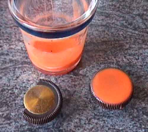 und von unten herausdrücken). Mittels einer scharfen Klinge wird die Form bis zum Boden des Knopfes aufgeschnitten und