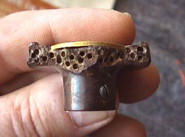 Die beiden folgenden Bilder zeigen die zusammengesetzte Form, daneben der Knopf so wie er später in der