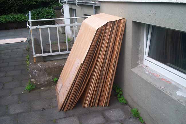 Alte Sperrholzbretter hatte ich im Keller. Und einen Schreiner an der Hand, der die Zuschnitte machte. Natürlich gleich