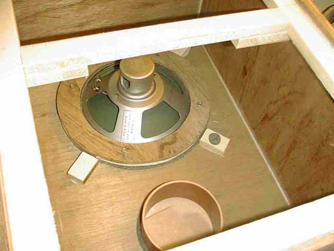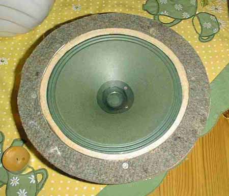 Lautsprecher und Bassreflexrohr wurden mit dicken Filz verkleidet.
