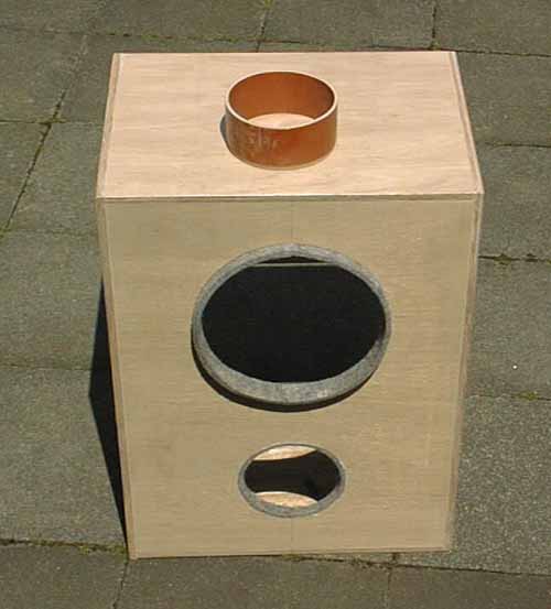 Für den Hochtonbereich habe ich ein Papprohr genommen, es kann naturlich auch das HT Rohr verwendet werden. Hinten offen